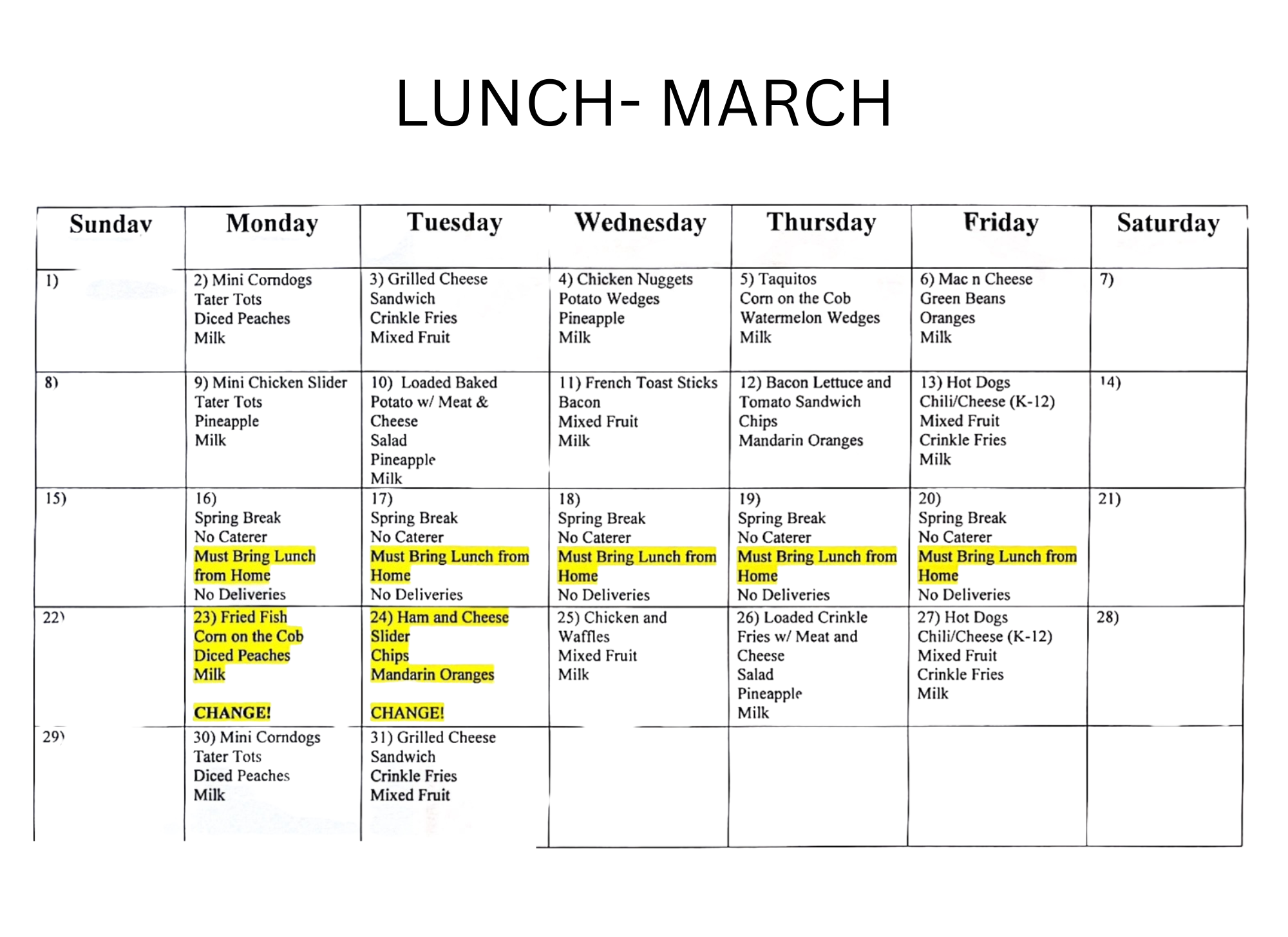 Trinity Lutheran School provides a catered hot lunch program through Golden Corral for its students and staff members unless there are extenuating circumstances. You will be notified if lunch will not be available.
